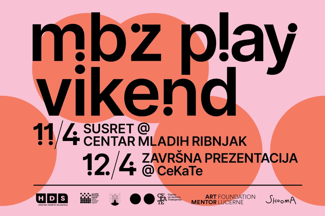 Muzički biennale Zagreb i Hrvatsko društvo skladatelja 11. i 12. travnja u Zagrebu organiziraju MBZ PLAY vikend – dvodnevni program posvećen suvremenim umjetničkim praksama, edukaciji i participaciji, s naglaskom na pojam igre kao umjetničkog principa.