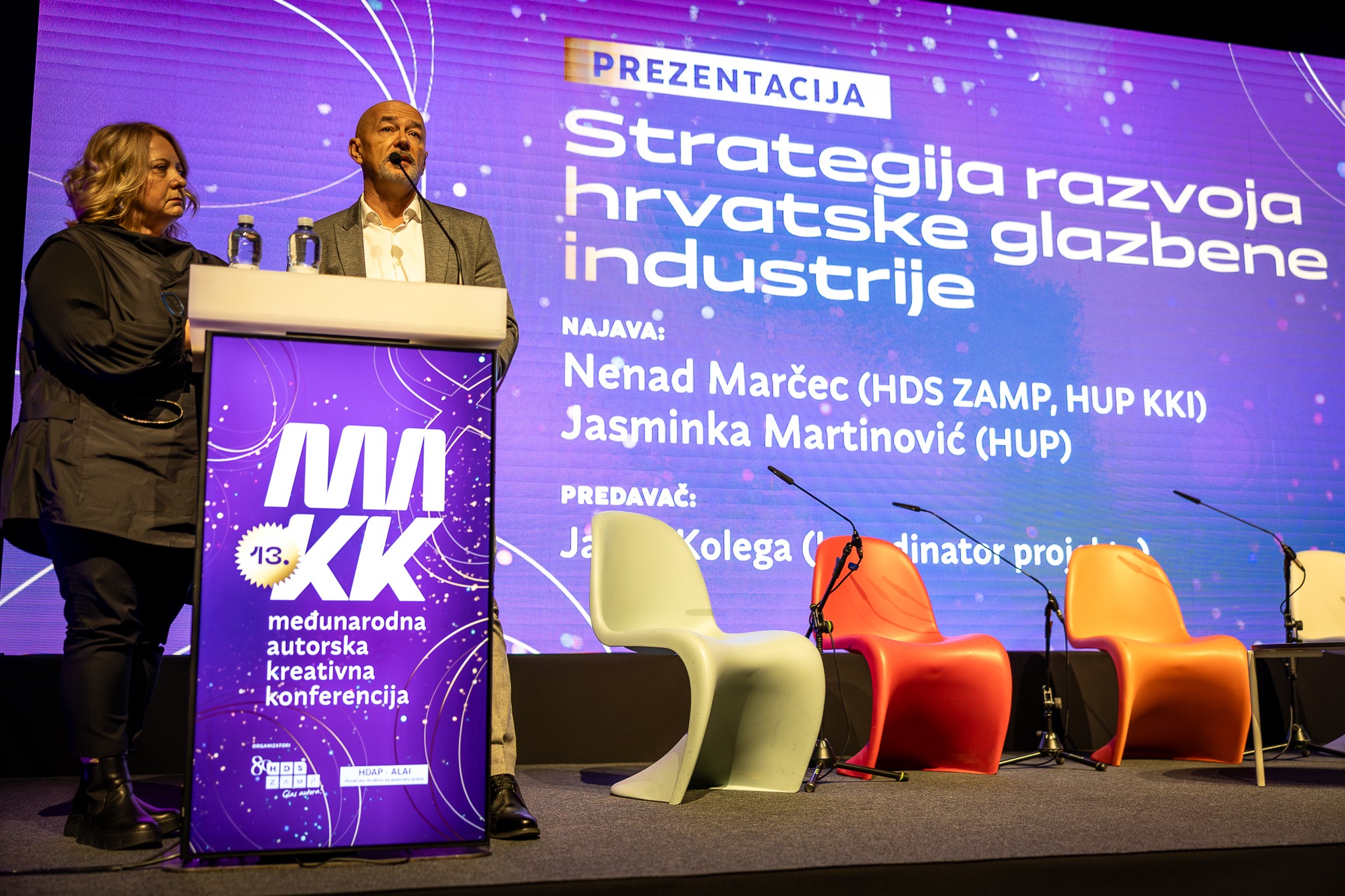 Jedan od središnjih trenutaka prvog dana bila je najava projekta “Strategija razvoja hrvatske glazbene industrije”, koju su predstavili glavni direktor HDS ZAMP-a i predsjednik HUP Koordinacije kreativnih i kulturnih industrija Nenad Marčec te direktorica granskih udruga Hrvatske udruge poslodavaca Jasminka Martinović. Jakov Kolega je kroz svoju prezentaciju razradio predstavljenu inicijativu, čime je otvorena važna rasprava o održivosti, ekonomiji i budućnosti sektora.
