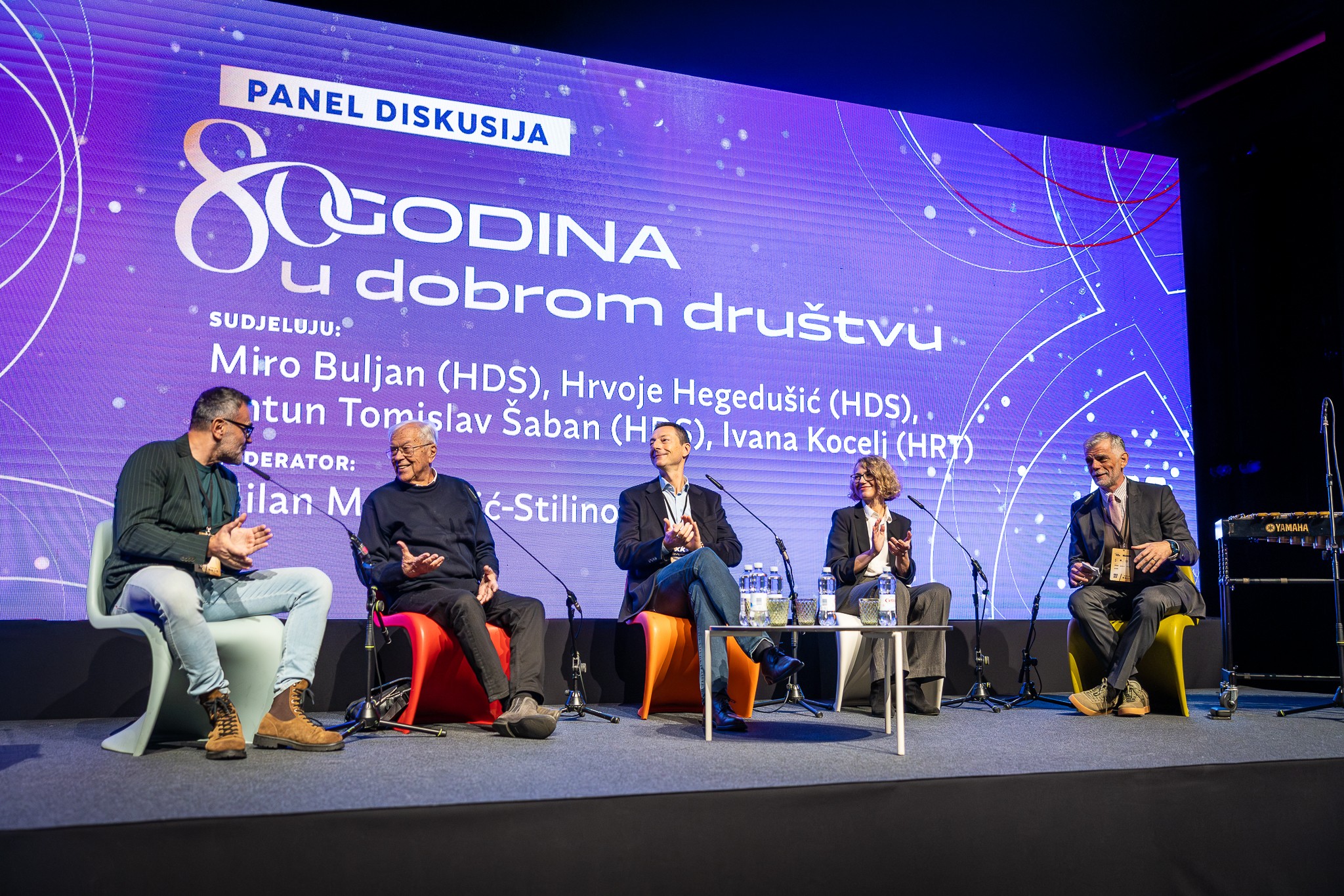 Panel “80 godina u dobrom društvu” obilježio je prvih osam desetljeća stvaranja, povezivanja i podrške autorima te se osvrnuo na bogatu povijest Društva, od njegovih začetaka do današnjih dana. Na panelu su sudjelovali Miro Buljan, aktualni predsjednik HDS-a, autor i producent koji je donio perspektivu suvremene glazbene industrije; Hrvoje Hegedušić, kantautor i jedan od ključnih stvaratelja domaće glazbene povijesti te bivši predsjednik i dugogodišnji član HDS-a koji se prisjetio vremena kada je primljen u Društvo; Antun Tomislav Šaban, glavni tajnik HDS-a i skladatelj koji je komentirao svoja dva desetljeća oblikovanja razvoja Društva i njegovih inicijativa; te Ivana Kocelj, ravnateljica Glazbene produkcije HRT-a i stručnjakinja za glazbene institucije i kulturne politike koja dugi niz godina kroz različite projekte surađuje s Društvom. Panel je ponudio sentimentalan i stručan pogled na glazbenu baštinu HDS-a i razvoj hrvatske autorske scene, a moderirao ga je Milan Majerović-Stilinović.